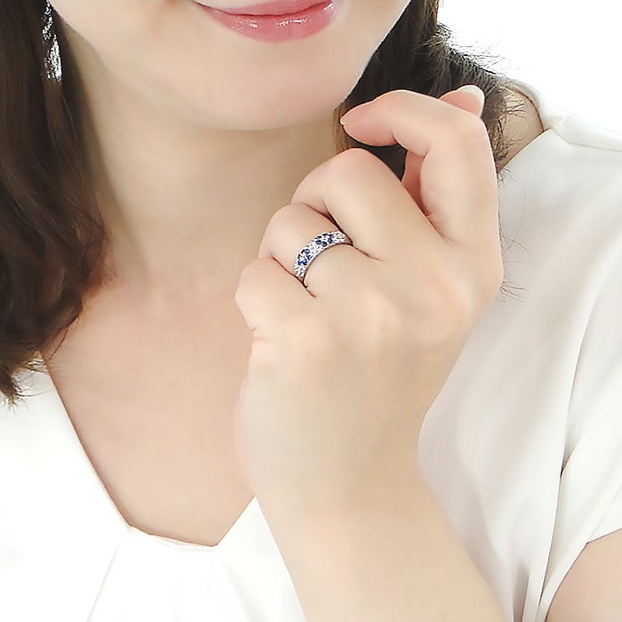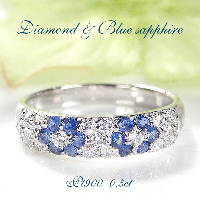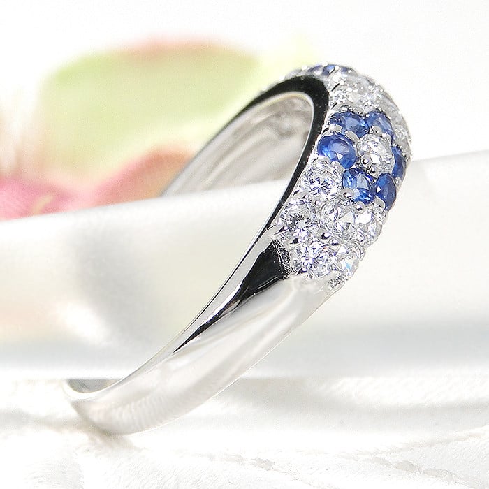 指輪 プラチナ PT900 ダイヤモンド 0.5ct ブルーサファイア レディース リング フラワー 花 パヴェ 月甲丸 カラーストーン 誕生石【f236-pt-bs】 ALPAZ101