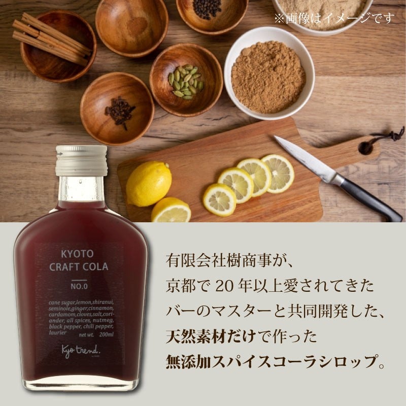 - 京都クラフトコーラ 1本 天然素材 シロップ 希釈用 割材 コーラ クラフトコーラ 大人のコーラ 飲料 ドリンク スパイス きび砂糖 レモン 果汁 シナモン カルダモン コリアンダー ナツメグ 黒胡椒 唐辛子 ローリエ 京都 八幡 樹商事