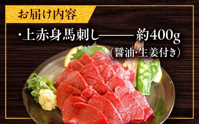 馬刺し 厳選上赤身 約400g(醤油・生姜付き) / 熊本馬刺し 馬刺 馬刺し 霜降り 馬肉 醤油付き 生姜付き 熊本 くまもと 菊陽町 【有限会社菊陽食肉センター】 [BHAC004]