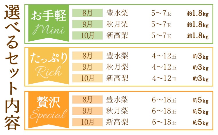 - 梨 定期便 秀品 3ヶ月連続 梨の定期便 選べる 内容量 計5.4kg 計9kg 計15kg 日本フルーツ株式会社《8月上旬-10月末頃出荷》熊本県 長洲町 なし ナシ 豊水梨 秋月梨 新高梨 果物 フルーツ---sn_cnfzntei_29500_mini_aug3---