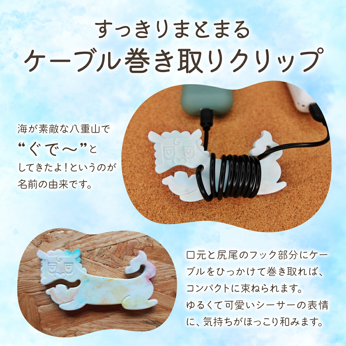 - 【ふるさと納税】【回収地が選べる】ケーブル巻き取りクリップ 小浜島 or 鳩間島 ぐでしーさー【 雑貨・アップサイクル品 】