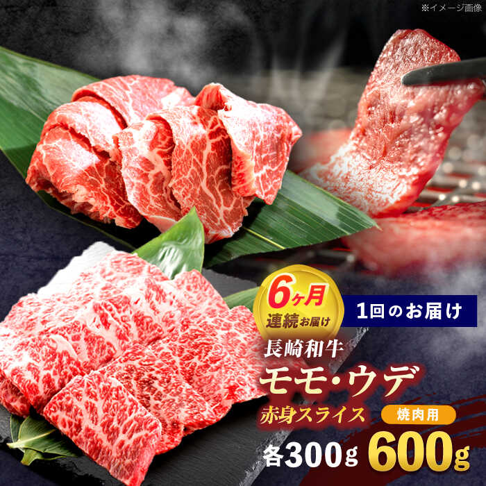 - 【ふるさと納税】【6回定期便】長崎和牛 焼肉用 赤身スライス600g (モモ・ウデ 各300g)【株式会社 黒牛】[OCE098]