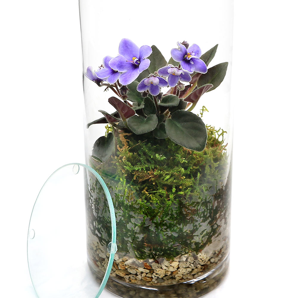 - 【ふるさと納税】苔テラリウム セントポーリア 品種おまかせ 円柱ボトルLサイズ 蓋付(1個)群馬県 千代田町 インテリア ナチュラル 自然 リラクゼーション 室内栽培 プレゼント ギフト 贈答用 送料無料 株式会社チャーム