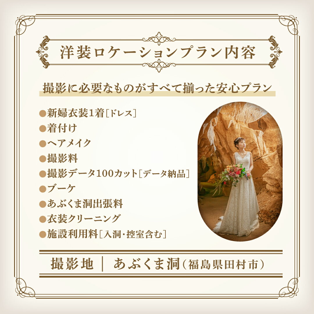 【ふるさと納税】 あぶくま洞 洋装ロケーションフォトプラン 撮影データ 100カット付き 前撮り フォトウエディング ウエディングフォト ブライダル ドレス ヘアメイク 記念撮影 写真撮影 結婚記念 福島県 田村市 ウエディングドレス クロエ