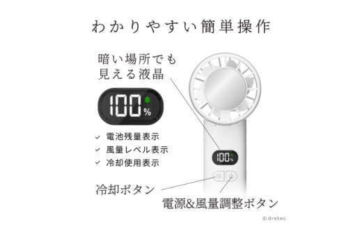 - ドリテック ひんやりハンディファン ホワイト FN-208WT【1716937】