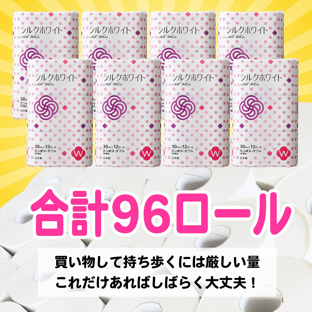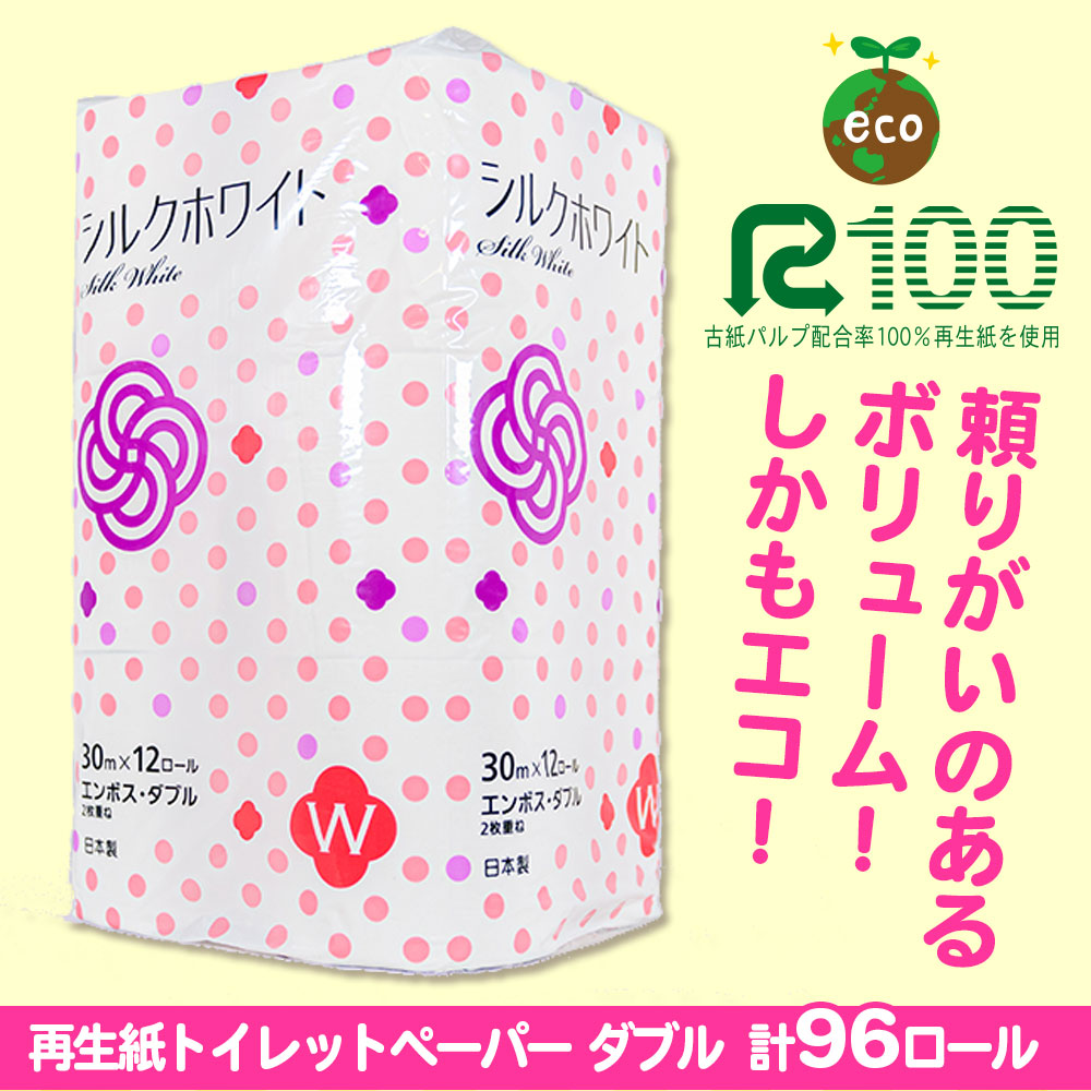- 《5月発送》\配送時期が選べる/ トイレットペーパー ダブル シルクホワイト ダブル 30m 12ロール×8パック (96ロール) ふるさと納税 無香料 業務用 まとめ買い 再生紙 長尺 リサイクル エコ 柔らかい 人気 価格 おすすめ 送料無料 岩手県 一関市