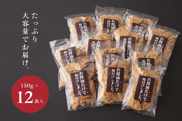 - お煎餅「お醤油だけで味付けしました。」×12袋 | 煎餅 菓子 お菓子 お茶請け おやつ 和菓子 おせんべい 米菓子 醤油 定番 せんべい スナック シンプル 米 茨城県 古河市 _EU03