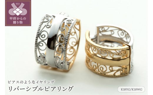 < 甲府ジュエリー >【ジュエリーの街、山梨県甲府市】K18YG/K18WGリバーシブルピアリング E4843