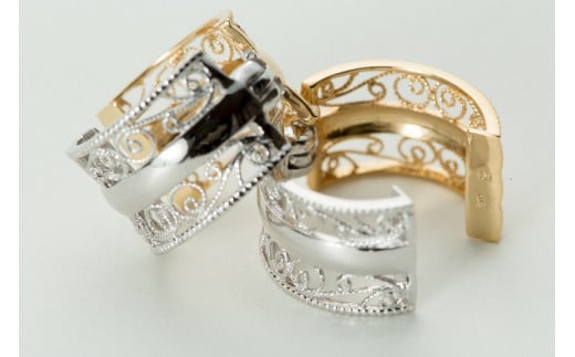 - < 甲府ジュエリー >【ジュエリーの街、山梨県甲府市】K18YG/K18WGリバーシブルピアリング E4843