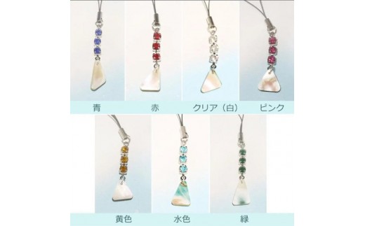 【黄色】悠ヶ風の夜光貝<3連ラインストーンストラップ>