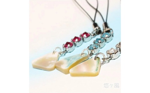 - 【黄色】悠ヶ風の夜光貝<3連ラインストーンストラップ>