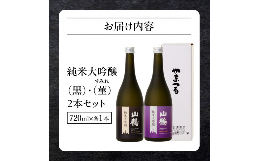 - 純米大吟醸 (黒) 菫(すみれ) 720mL×2本セット 瓶 純米 大吟醸 山田錦 山鶴 甘口 やや甘口 果実香 ジューシー 飲み比べ まろやか コク すっきり 飲みやすい 上品 冷酒 燗酒 お酒 酒 アルコール 中本酒造 奈良県 生駒市 送料無料