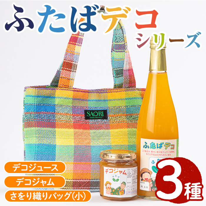 - ふたばデコシリーズ&さをり織りバッグ(小) 国産 工芸品 飲み物 ジャム セット ジュース 不知火 オレンジ 柑橘 飲料 調味料 加工品 ギフト プレゼント【デイハウスふたば脇本】akn041-03