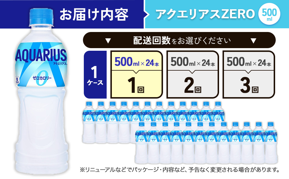 アクエリアス ゼロ PET 500ml×24本 1ケース【コカコーラ】水分補給 熱中症対策 部活 スポーツ 運動 ウォーキング ランニング マラソン アウトドア レジャー 登山 キャンプ 少年団