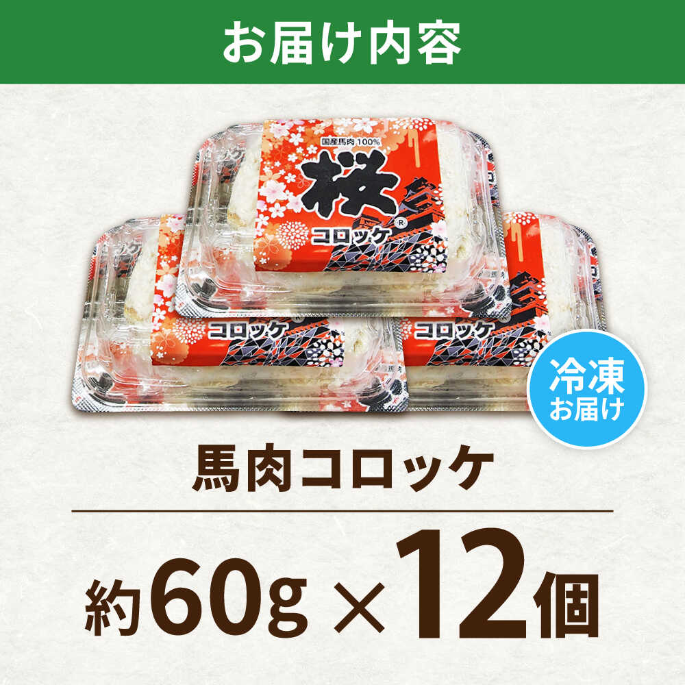- 【ふるさと納税】『純国産』熊本の味「桜」 国産 馬肉 100% 馬肉 コロッケ 計12個 【有限会社 九州食肉産業】[AYCN117] 馬肉コロッケ 冷凍 惣菜 お弁当 熊本 くまもと 熊本県 合志市 合志
