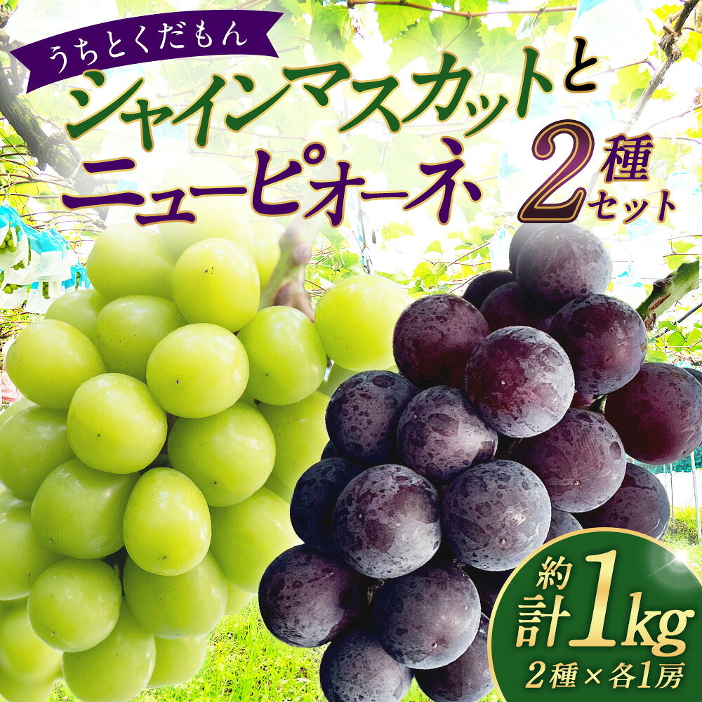 - 【ふるさと納税】【うちとくだもん】のシャインマスカットとニューピオーネ 2種セット 計2房(各1房) 計約1kg ぶどう ブドウ 葡萄 大粒 フルーツ くだもの 果物 果実 デザート 大分県産 国産 大分県 竹田市 送料無料 【2026年10月上旬~11月下旬まで順次発送予定】