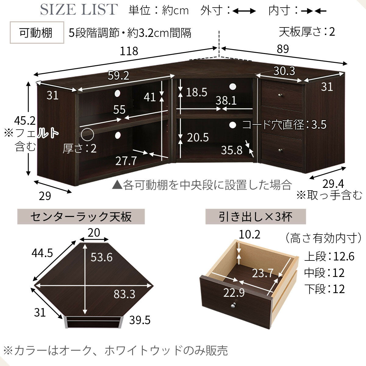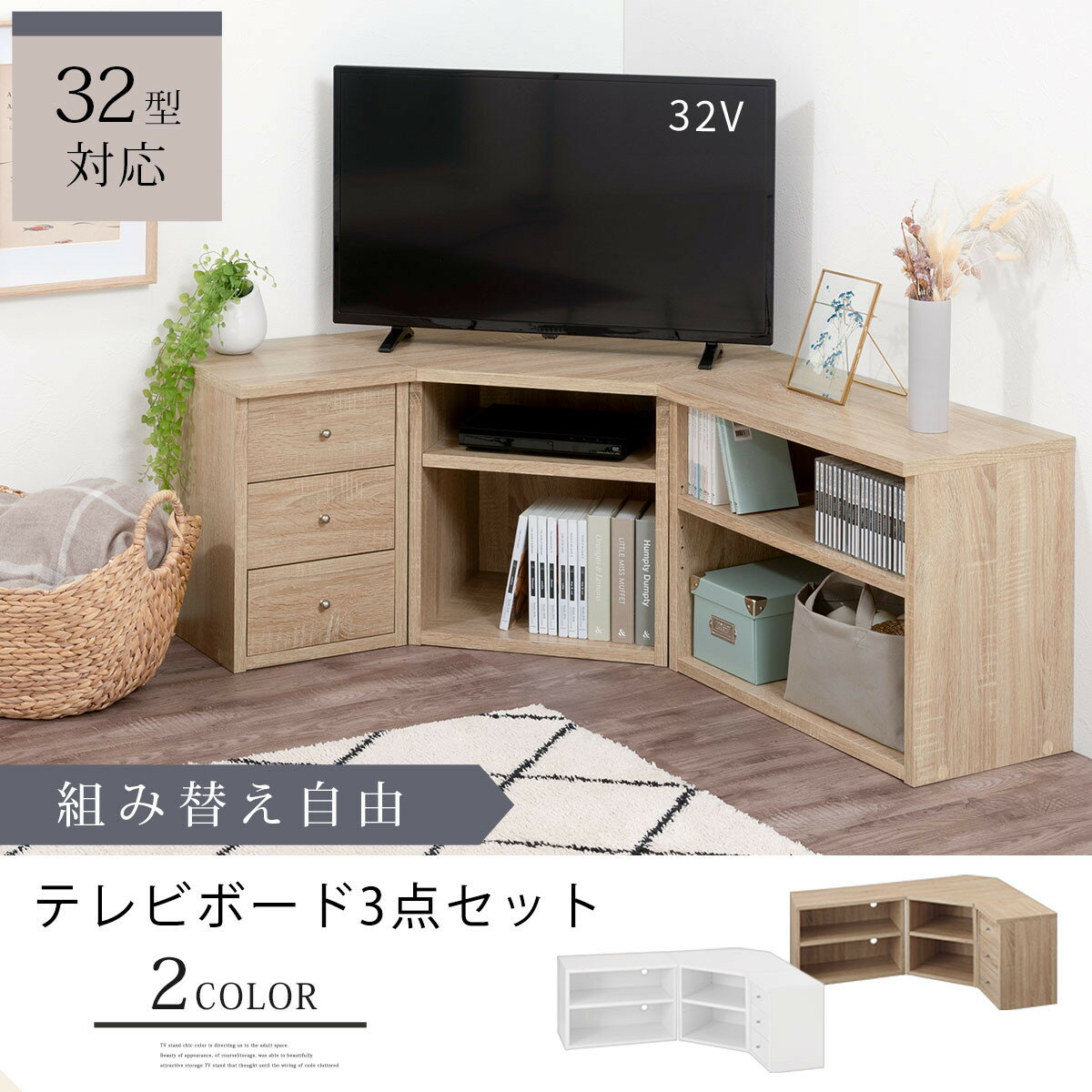 - 【ふるさと納税】【完成品+設置付き】コーナーテレビ台3点セット(選べる2色)コーナー テレビ台 シェルフ 棚 テレビボード 角置き 三角 tv台 ロータイプ おしゃれ 角 32インチ 32型 収納 多い 引き出し 木製 低い TKONVBHM0330