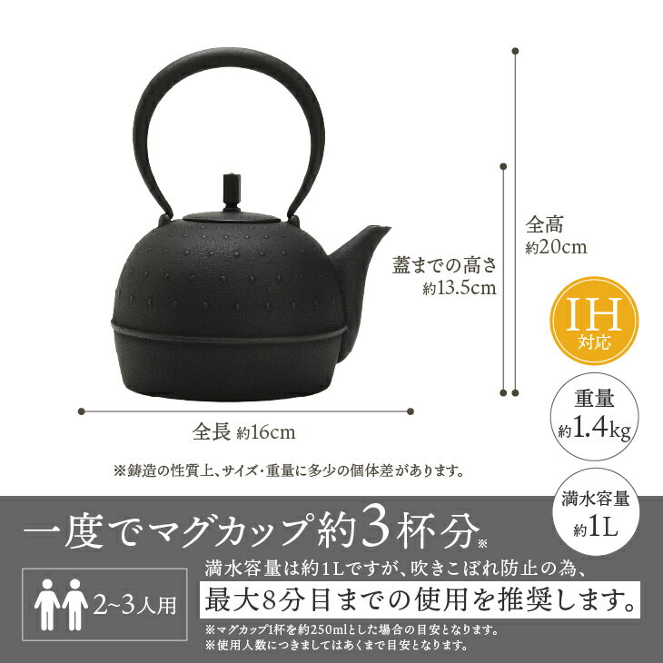 - 【ふるさと納税】 南部鉄器 鉄瓶 Sayu (サユ)大 1.0L IH調理器 伝統工芸品 やかん ケトル キッチン用品 食器 日用品 雑貨 [Y0059]