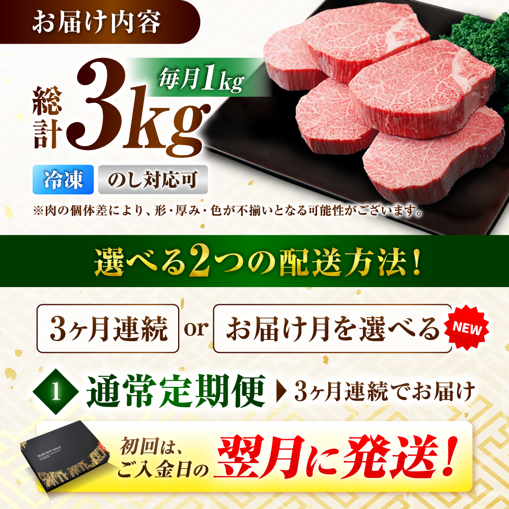 - 【全3回定期便】【お届け月が選べる!】 佐賀牛 ヒレステーキ 200g×5枚 吉野ヶ里町/丸宗ミート [FDP002/FDP026]