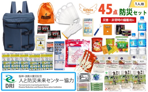 - 【人と防災未来センター協力】1人用 45点防災グッズ 豊岡産【ネイビー】