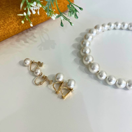 - コットンパール「ホワイト」シンプルショートネックレス(金具ゴールド)とイヤリング2点セット | 結婚式 二次会 パーティー 入学式 卒業式 華やか