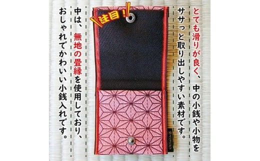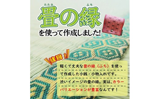 【畳の縁で制作】小銭・小物入れ / 麻の葉模様 1個 (緑) SZ0336