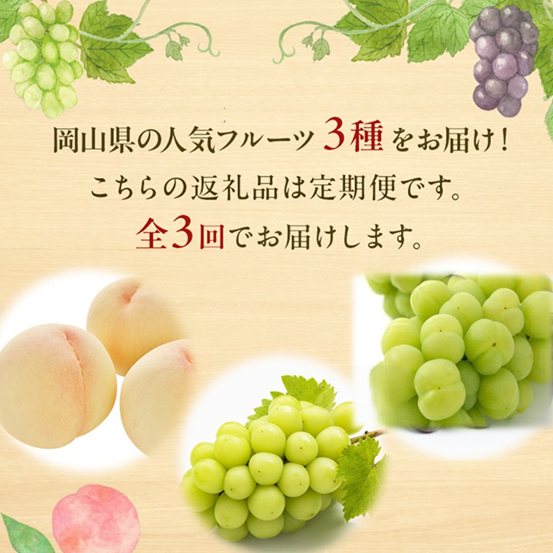 先行予約 晴れの国 岡山のフルーツ 定期便 3回コース 1回目 岡山 白桃6玉 合計約1.2kg/2回目 桃太郎ぶどう2房 合計約1kg/シャインマスカット 2房 合計約1kg
