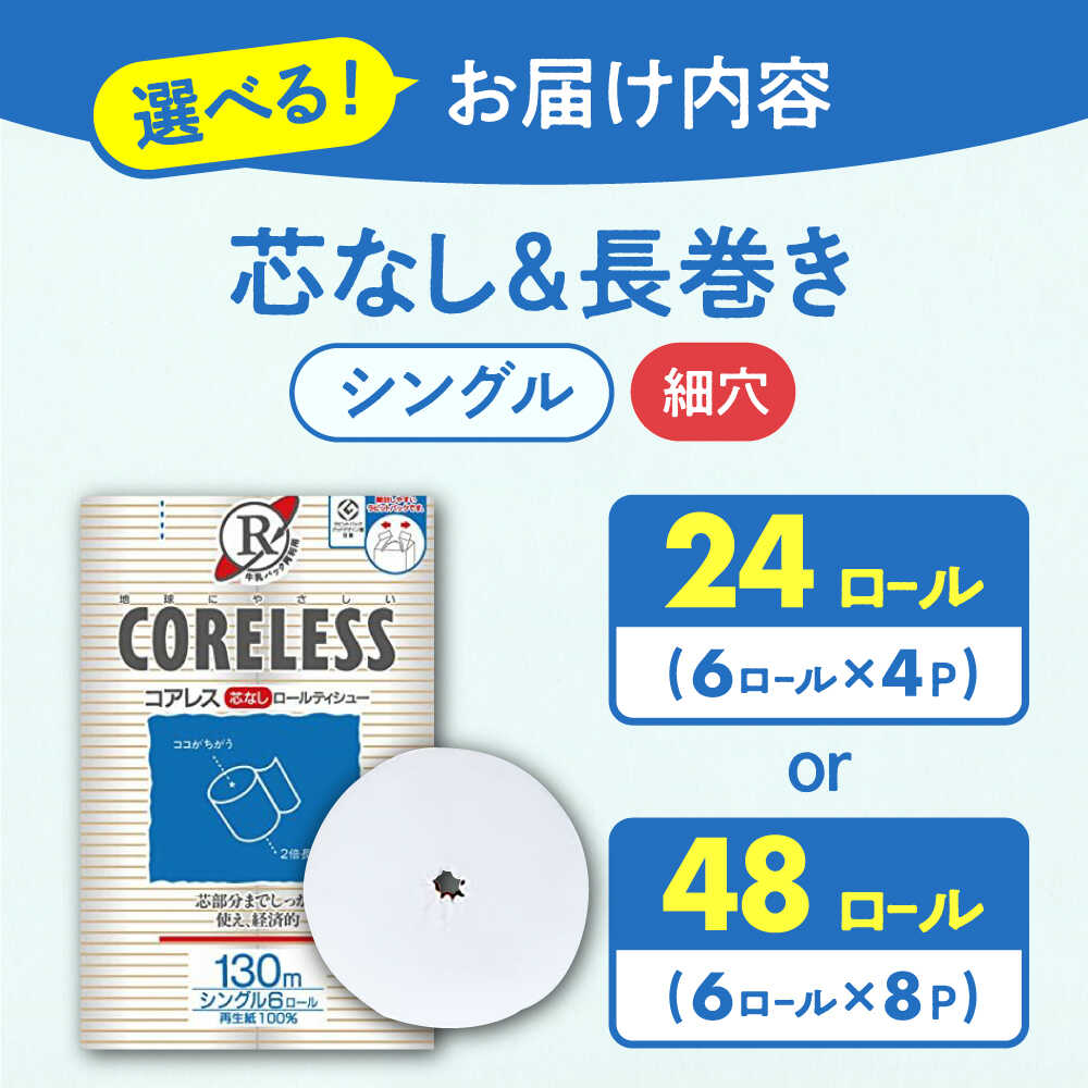 - 【ふるさと納税】細穴トイレットペーパー シングル 長巻き 130m 24ロール 48ロール 選べる エコ コアレス《豊前市》【大分製紙】 [VAA017] 備蓄 防災 まとめ買い 日用品 消耗品 常備品 生活用品 大容量