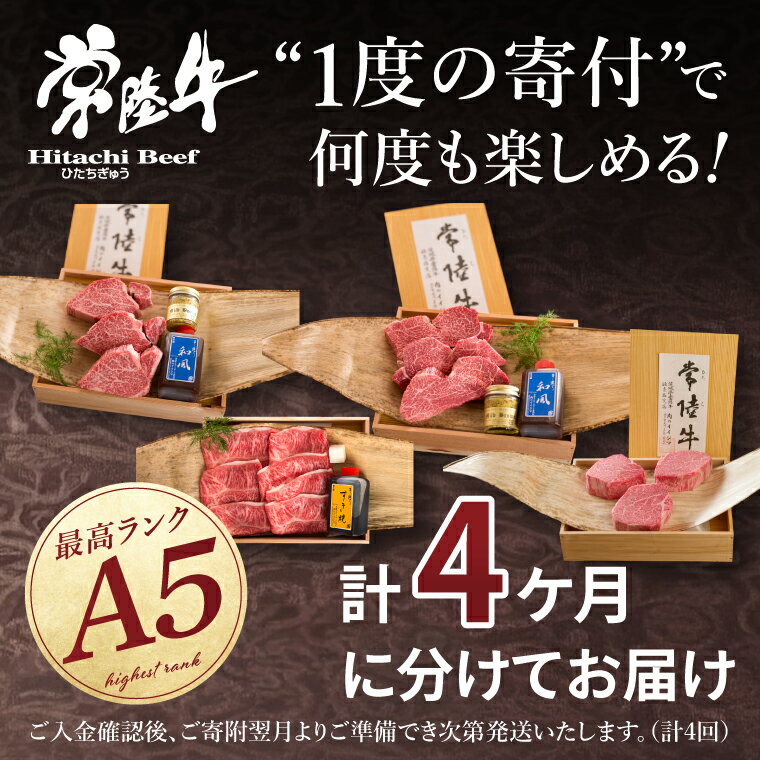 【ふるさと納税】【 定期便 全4回 】肉 常陸牛 A5の希少部位三昧 木箱入りフィレ赤身 シャトーブリアン フィレミニヨン みすじ 焼肉 ステーキ ヒレ肉 ヘレ 食べ物 冷凍 高級 茨城県 水戸市 高額(DU-99)