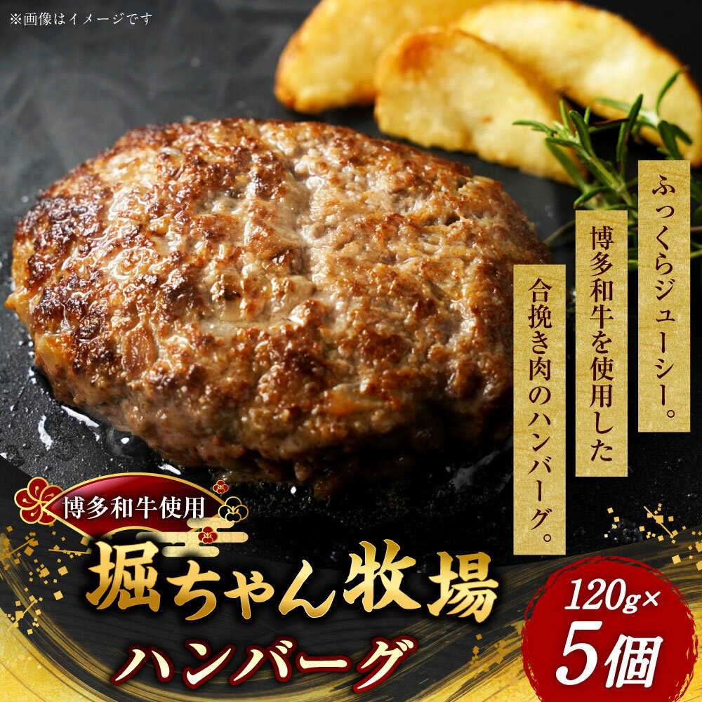 【ふるさと納税】堀ちゃん牧場 ハンバーグ 計600g(120g×5個) 博多和牛 合挽き肉 牛肉 豚肉 お肉 玉ねぎ 真空個包装 惣菜 おかず ごはんのお供 ご飯のお供 冷凍 福岡県産 国産 九州 福岡県 嘉麻市 送料無料