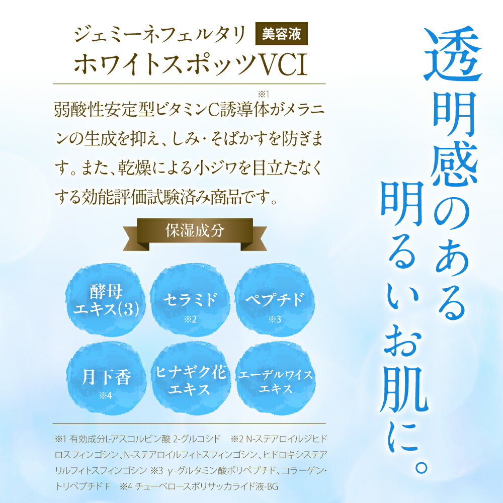 - 【ふるさと納税】ジェミーネフェルタリ ホワイトスポッツVCI 20mL 本数が選べる 1本 or 2本 美白 美容液 医薬部外品 ビタミンC誘導体 セラミド ペプチド スポットケア ジェミーネフェルタリ 中島香里 クリスタルジェミー 日用品 群馬県 千代田町