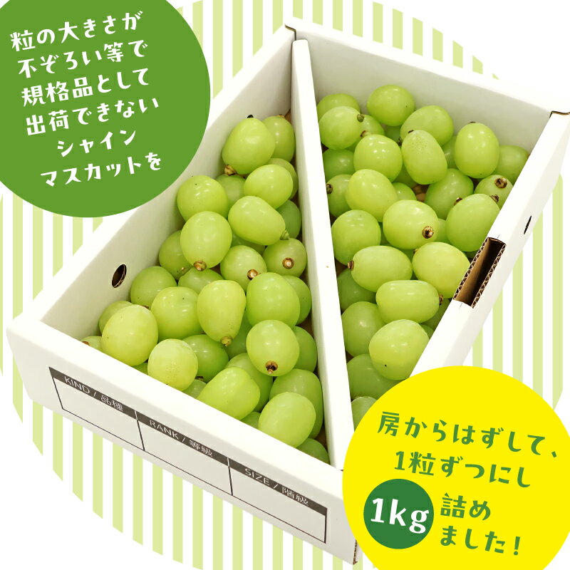 - 【ふるさと納税】【先行予約】《ご家庭用》令和8年産 訳ありシャインマスカット つぶつぶ 1kg 山形県産 2026年産 【2026年9月上旬頃〜10月中旬頃発送予定】※配送不可 沖縄・離島果物 ぶどう 葡萄 フルーツ ブドウ 種なし 産地直送 生産者直送 国産 ふるさと納税