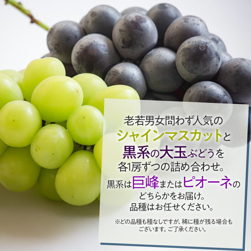 - 【ふるさと納税】【令和8年産先行予約】ぶどう詰め合わせ 2房(シャインマスカットと黒系品種(巨峰 or ピオーネ おまかせ) 各1房)