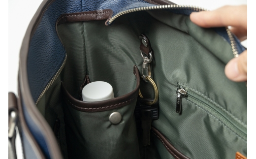ハンドメイド 3WAYトートバック 帆布 本革 多機能 A4 対応 紺