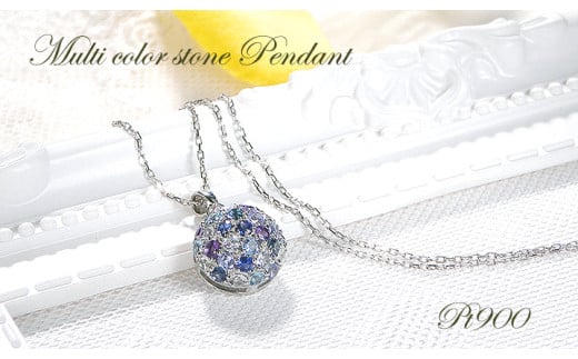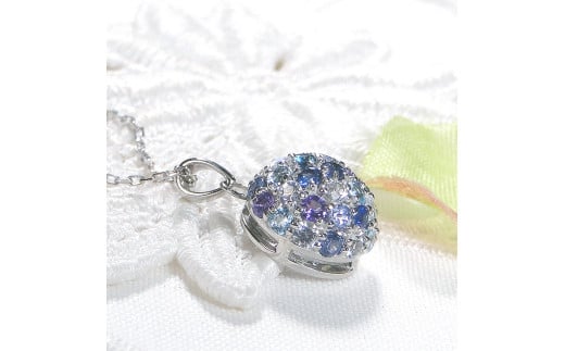ネックレス プラチナ PT900 マルチカラー 青系 ドーム パヴェ カラーストーン ペンダント サファイア アメジスト タンザナイト ブルートパーズ ジュエリー【f269-b-pt】 ALPAZ143
