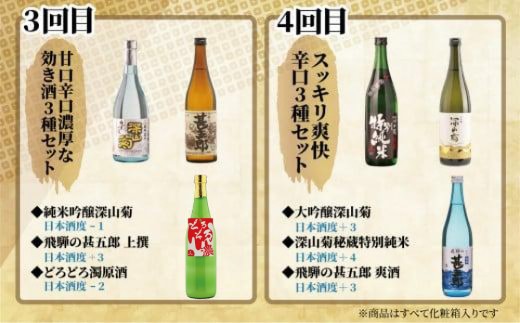 - 【定期便】飛騨高山地酒飲み比べ 定期便 4回お届け日本酒 大吟醸 にごり酒 利き酒 飲み比べセット 舩坂酒造 深山菊 飛騨 飛騨高山 純米酒 家飲み プレゼント FB101