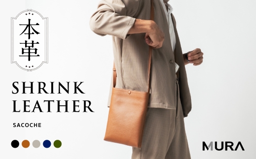 ブラック MURA スマートに持てる本革ショルダー 牛本革 シュリンクレザー サコッシュ メンズ 縦型 マグネット開閉 レザーポーチ 斜めがけ 小さめ 通勤 通学 シンプル カジュアル スタイリッシュ かっこいい ギフト プレゼント バッグ 25000円 2万5千円 岐阜県 大垣市