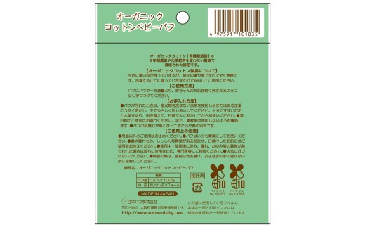 オーガニックコットンベビーパフ 2個|コットンパフ 赤ちゃん用 敏感肌用 無添加 ナチュラル スキンケア [1254]