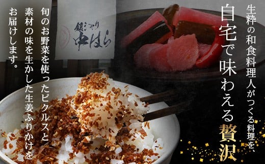 - 【先行予約】日本料理人が作る 和ピクルス(240g×2瓶)と生姜ふりかけ(70g×1瓶) 合計2種類 3本セット GN-13|鹿児島県 南大隅町 野菜 加工品 ピクルス 旬 新鮮 しょうが ふりかけ ごはん ご飯 おにぎり セット 銀シャリ中はら
