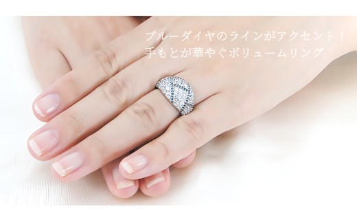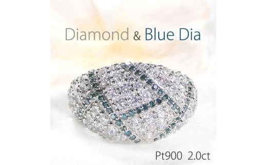 指輪 プラチナ リング PT900 ダイヤモンド&ブルーダイヤ 2.0ct パヴェ レディース ゴージャス ボリューム 幅広 贅沢 2カラット ダイヤ Pave ステンドグラス ジュエリー 【f295-bd-pt】※8号 ALPAZ188-8