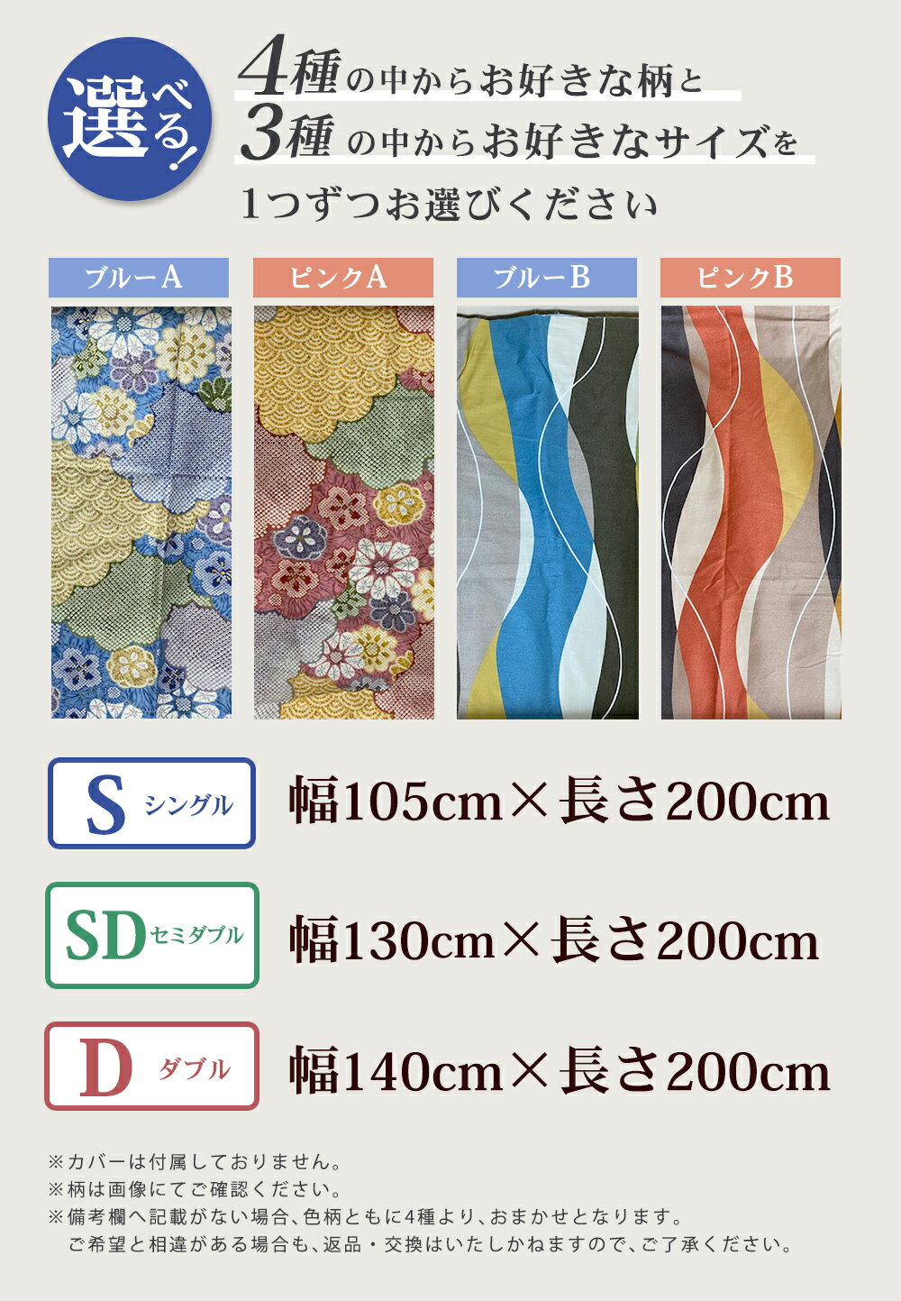 - 【ふるさと納税】【10営業日以内発送】布団屋が作った綿100%の敷き布団 選べるサイズ ( シングル / セミダブル / ダブル ) | 1枚 4種類から選べる柄 ブルー ピンク 青 桃色 ふとん かけ布団 寝具 日本製 長崎県 長崎市 送料無料