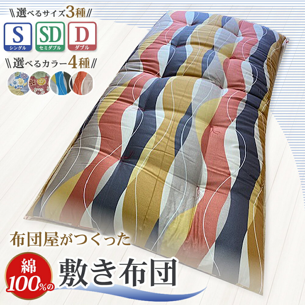 【ふるさと納税】【10営業日以内発送】布団屋が作った綿100%の敷き布団 選べるサイズ ( シングル / セミダブル / ダブル ) | 1枚 4種類から選べる柄 ブルー ピンク 青 桃色 ふとん かけ布団 寝具 日本製 長崎県 長崎市 送料無料