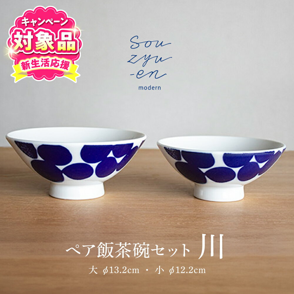 【ふるさと納税】【瀬戸焼】 川 夫婦茶碗セット(S・Mサイズ各1個)souzyu-en modern 茶碗 結婚祝い ペア 食器 瀬戸市 / 双寿園[BBBI004]