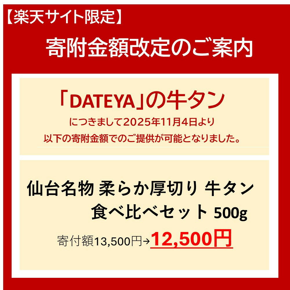【ふるさと納税】楽天限定価格 仙台名物 柔らか厚切り 牛タン・食べ比べセット 500g又は1kg【肉 お肉 にく 食品 人気 おすすめ ギフト】●<楽天クラウドファンディング対象> | 仙台発祥 厚切り 牛肉 肉 焼肉 BBQ たんもと たんなか 味付け肉 牛たん