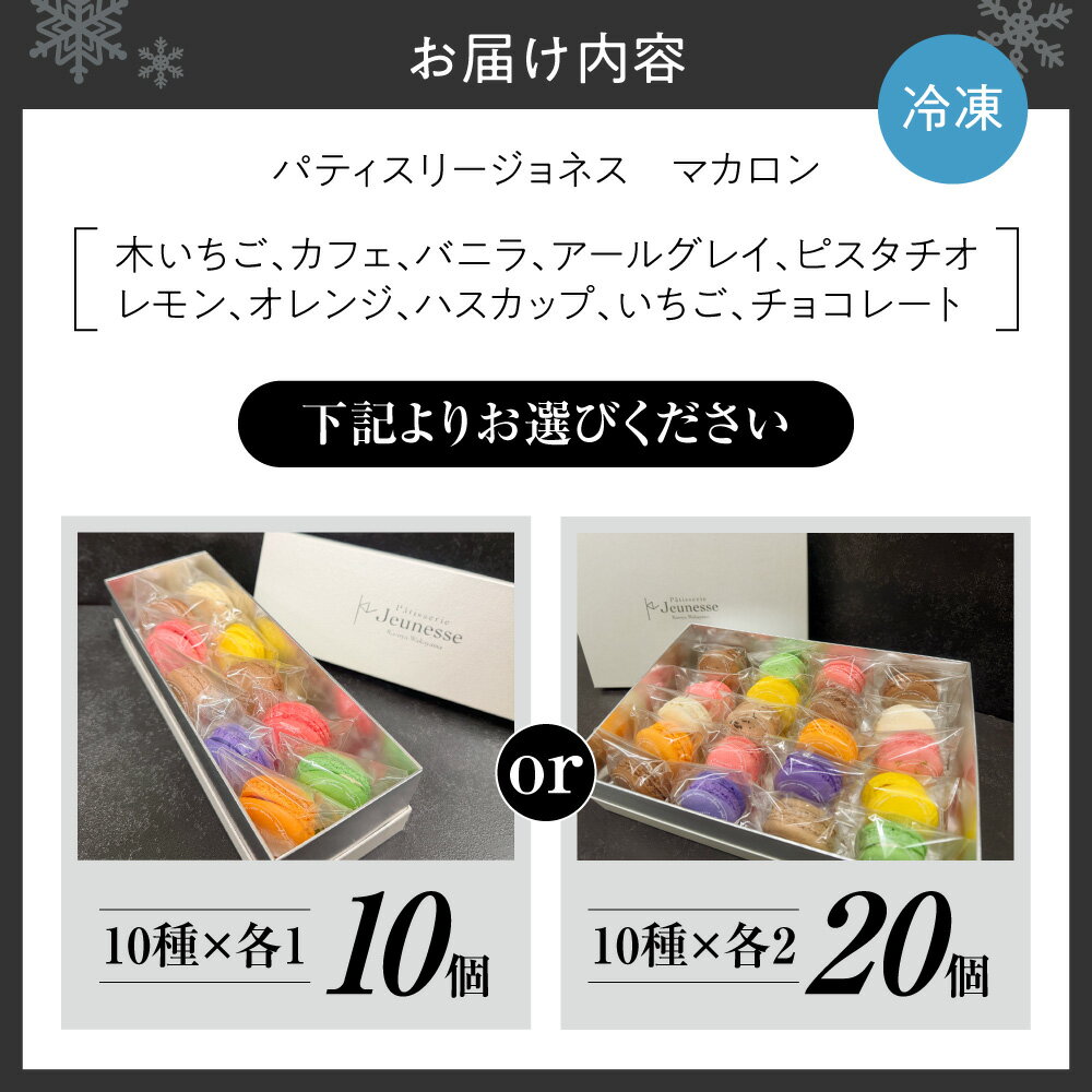 - 【ふるさと納税】 札幌 パティスリージョネス マカロン 【 選べる 容量 】 10個 20個 さっぽろスイーツコンペティション グランプリ 受賞 洋菓子専門店 スイーツ 洋菓子 いちご バニラ レモン オレンジ ハスカップ チョコレート 10種類 デザート おやつ 菓子 北海道 札幌市