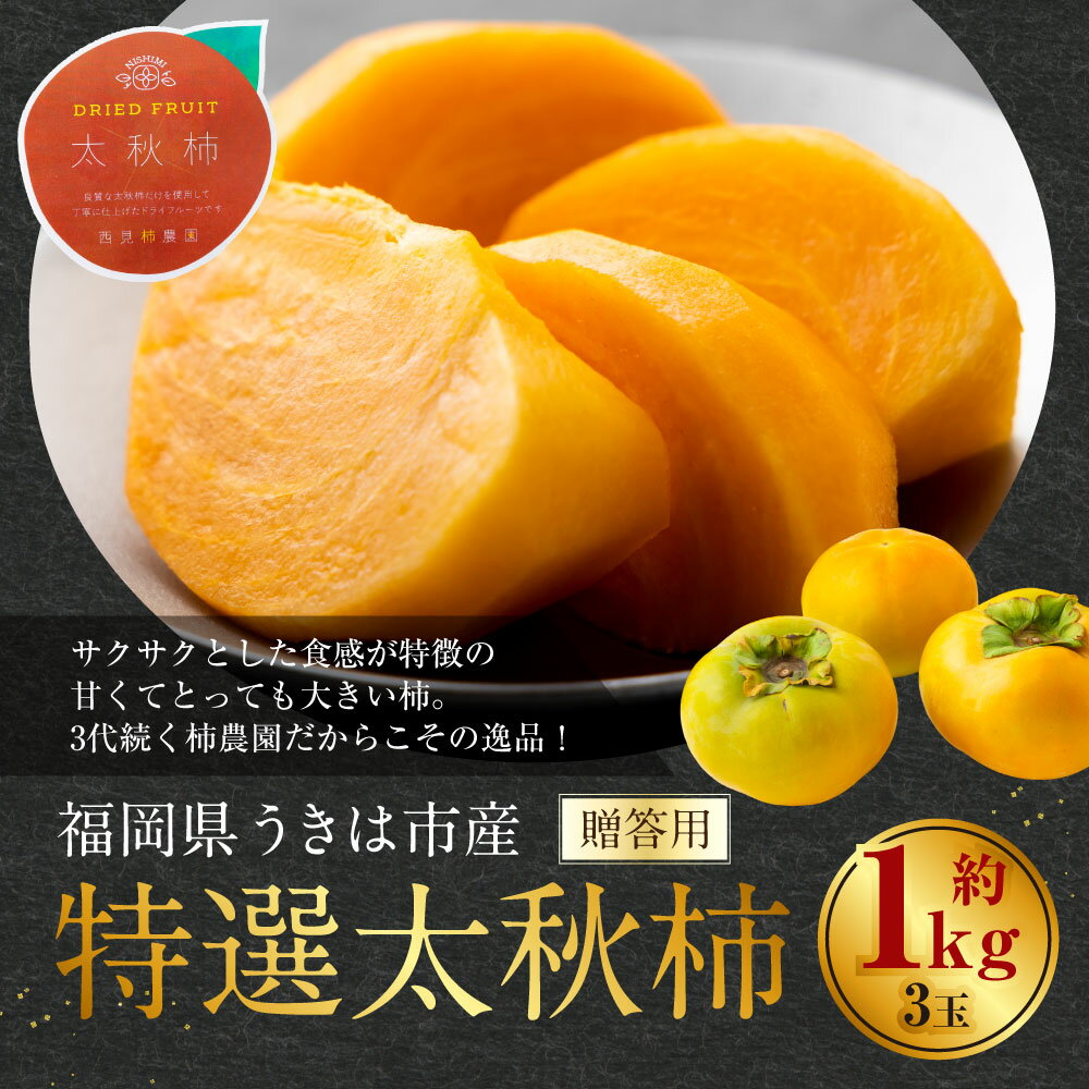 【ふるさと納税】特選太秋柿 3玉(約1kg) 贈答用 ギフト 完全甘柿 柿 かき カキ フルーツ くだもの 果物 果実 デザート 福岡県産 国産 九州 福岡県 うきは市 送料無料 【2026年11月上旬~12月上旬発送予定】