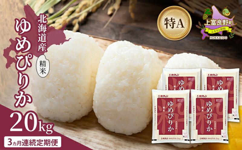 - 【ふるさと納税】【3ヵ月連続定期便】北海道産 ゆめぴりか 精米 20kg 米 特A 獲得 白米 ごはん 定期便 定期配送 3ヵ月 道産米 ブランド米 20キロ お米 ご飯 米 北海道米 JAふらの ホクレン ホクレン米 送料無料 北海道 上富良野町