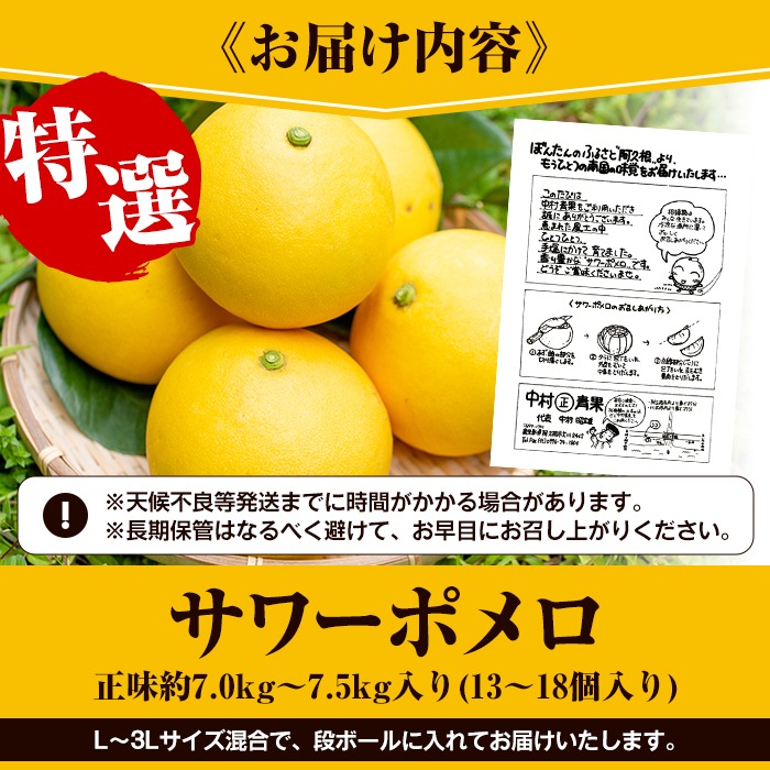 数量限定!特選サワーポメロ(正味約7.0kg~7.5kg・ L~3Lサイズ13~18個) 国産 フルーツ 果物 柑橘類 サワーポメロ 甘味 酸味 デザート おやつ【なかむら果樹園】akn014-02