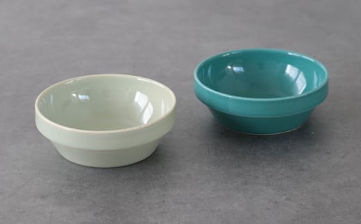 - 【波佐見焼 マルヒロ】HASAMI SEASON 01 ブロックボウル ペアセット(2点)グリーン×イエローベージュ [EB171]