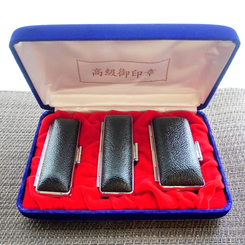 - 手彫り 印鑑 柘 法人印 認印 と 角印 3本セット ケース付き : 印章 判子 ハンコ